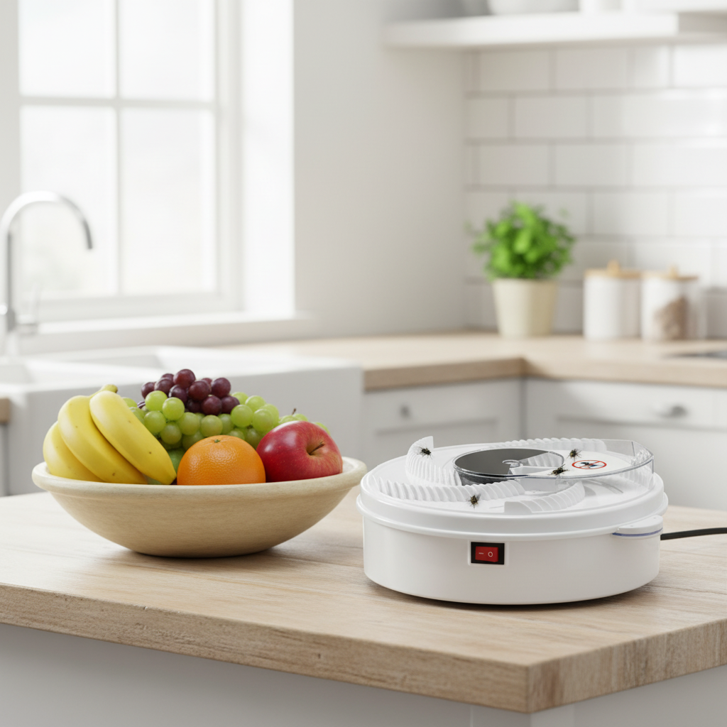 Piège physique à haute efficacité : les mouches sont attirées par l’appât (miel, sucre en poudre, sirop, etc.), puis conduites par la plaque rotative dans la boîte de collecte. Sûr, non toxique et écologique — adapté aux maisons avec bébés et femmes enceintes.