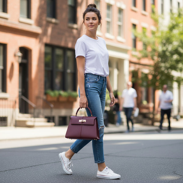 Ce sac en cuir avec fermoir doré incarne l’élégance intemporelle. Il accompagne chaque femme dans ses journées bien remplies, du bureau aux soirées en ville. Plus qu’un accessoire, il devient le reflet de son style et de sa confiance.