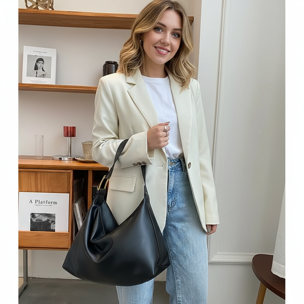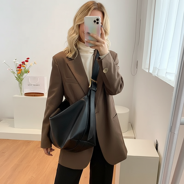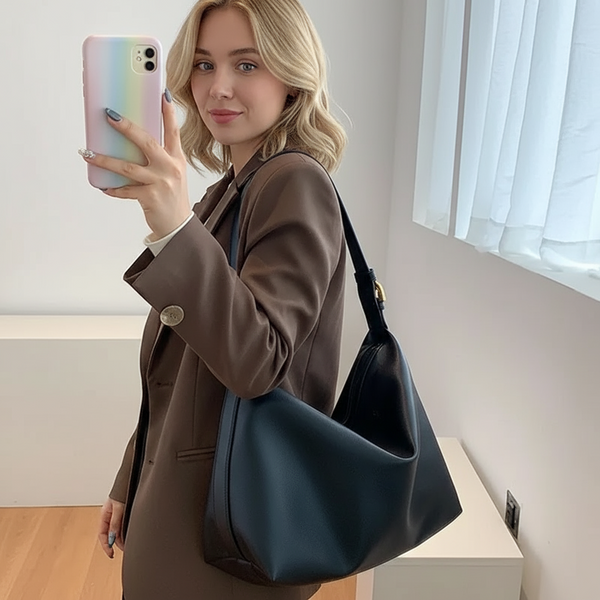 Ce sac à épaule en cuir combine finesse, praticité et modernité. Son design épuré et sa bandoulière réglable soulignent une silhouette chic et contemporaine, idéale pour sublimer chaque tenue.